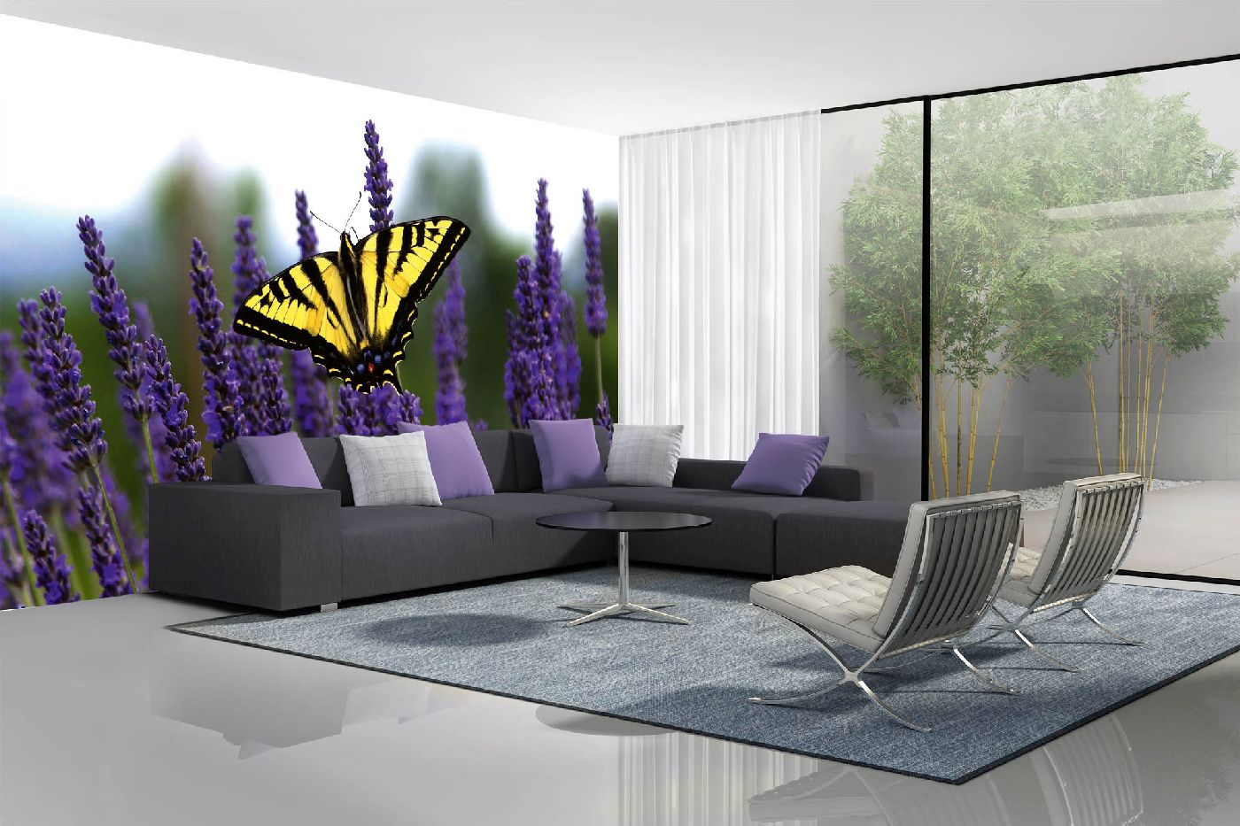 MS-5-0463 Fototapetă vlies pentru perete Fluture pe lavandă - 375 x 250 cm
