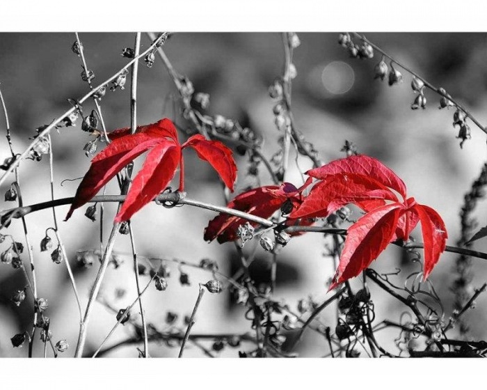 MS-5-0110 Fototapetă vlies pentru perete Frunze roșii pe fundal negru - 375 x 250 cm