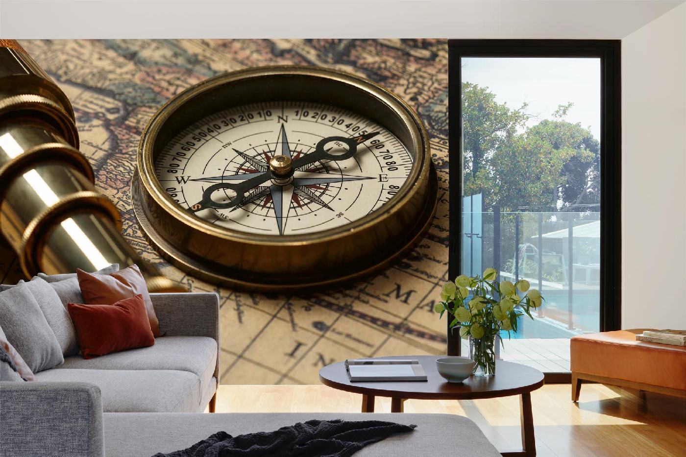 MS-5-1532 Fototapetă vlies pentru perete Hartă veche și busolă - 375 x 250 cm