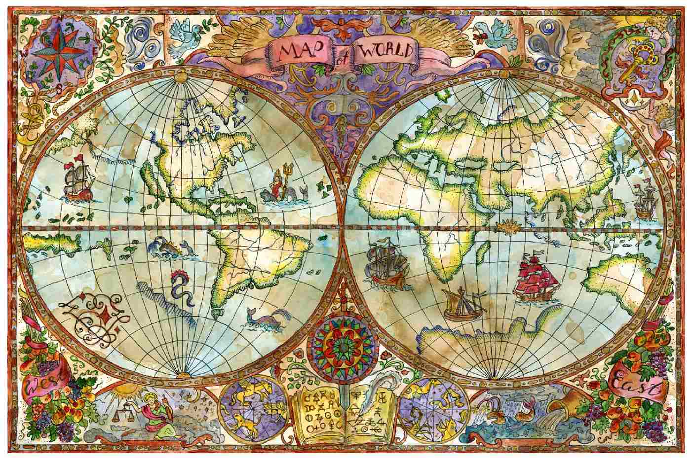 MS-5-1557 Fototapetă vlies pentru perete Ilustrație a lumii - 375 x 250 cm