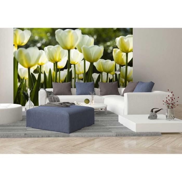 MS-5-0127 Fototapetă vlies pentru perete Lalele albe - 375 x 250 cm