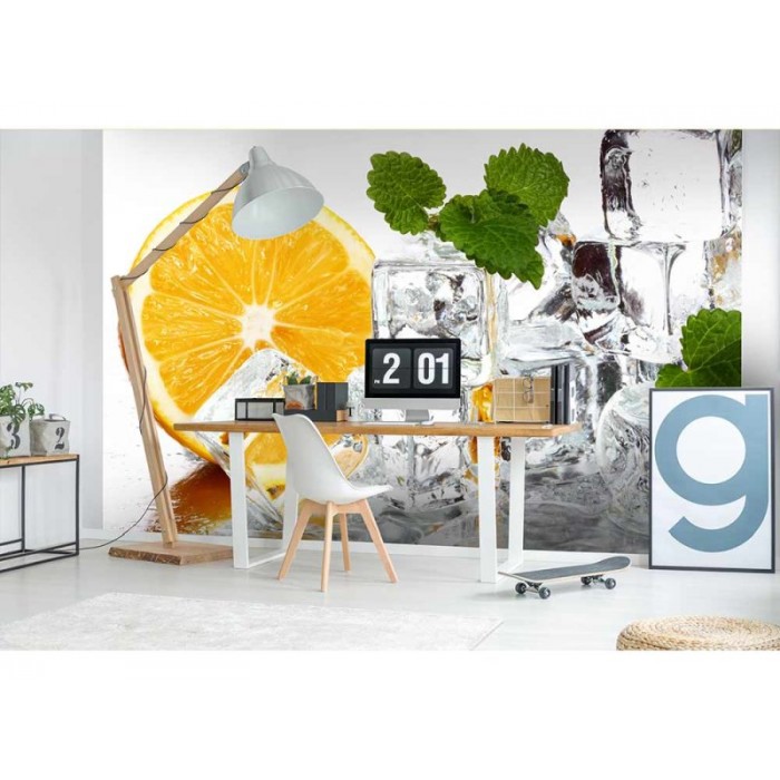 MS-5-0238 Fototapetă vlies pentru perete Lămâie și gheață - 375 x 250 cm
