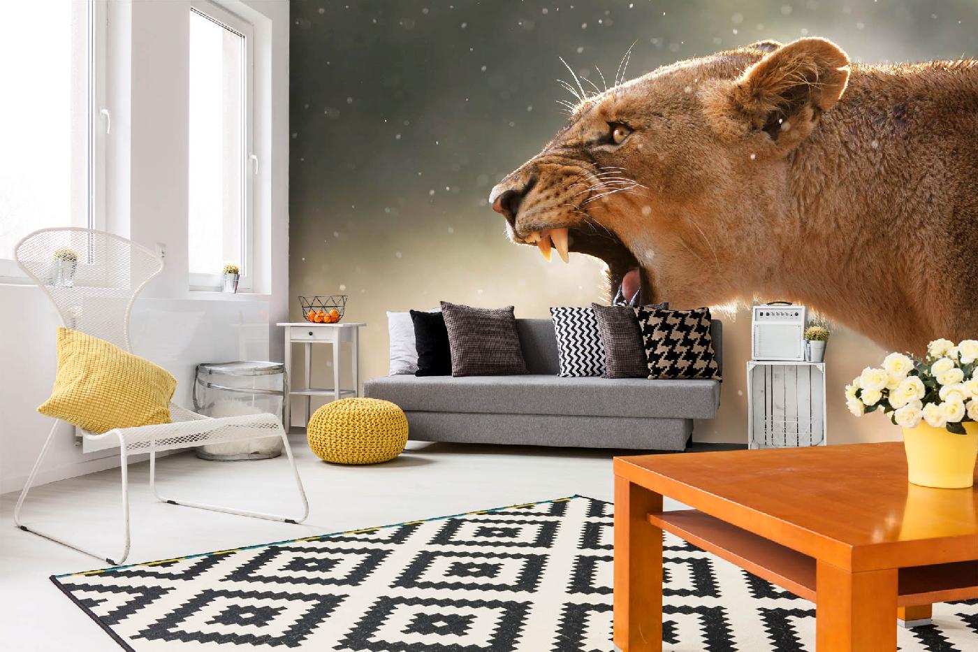 MS-5-0569 Fototapetă vlies pentru perete Leoaică care răcnește - 375 x 250 cm