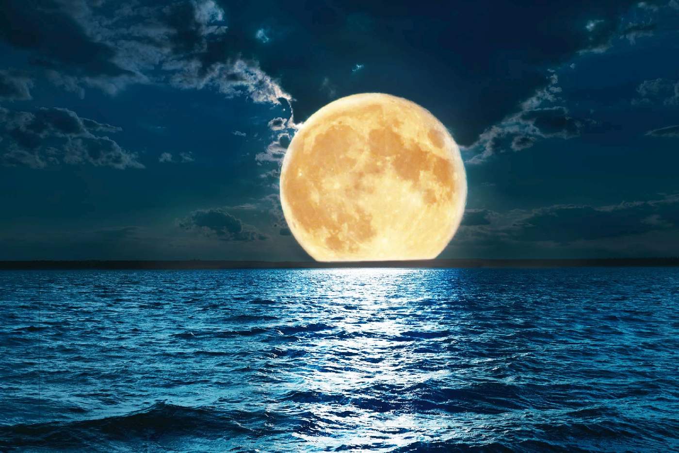 MS-5-2308 Fototapetă vlies pentru perete Lună plină peste apă - 375 x 250 cm