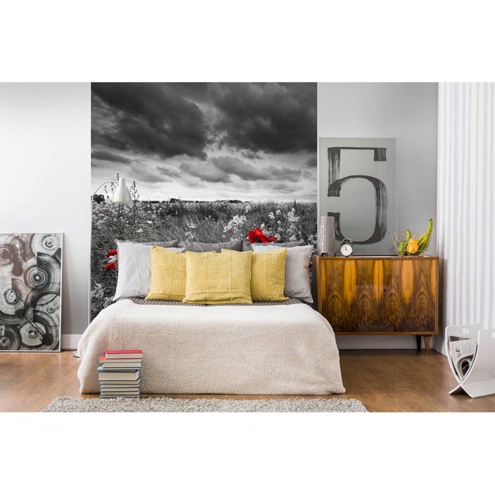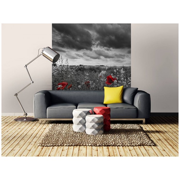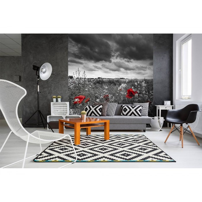 MS-3-0091 Fototapetă vlies pentru perete Maci albi și negri - 225 x 250 cm