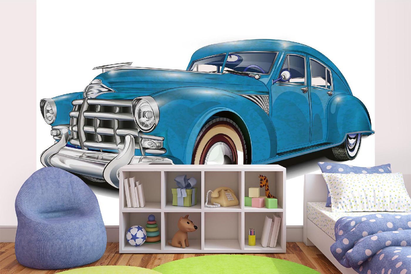 MS-5-2190 Fototapetă vlies pentru perete Mașină albastră retro - 375 x 250 cm