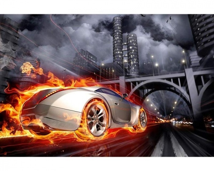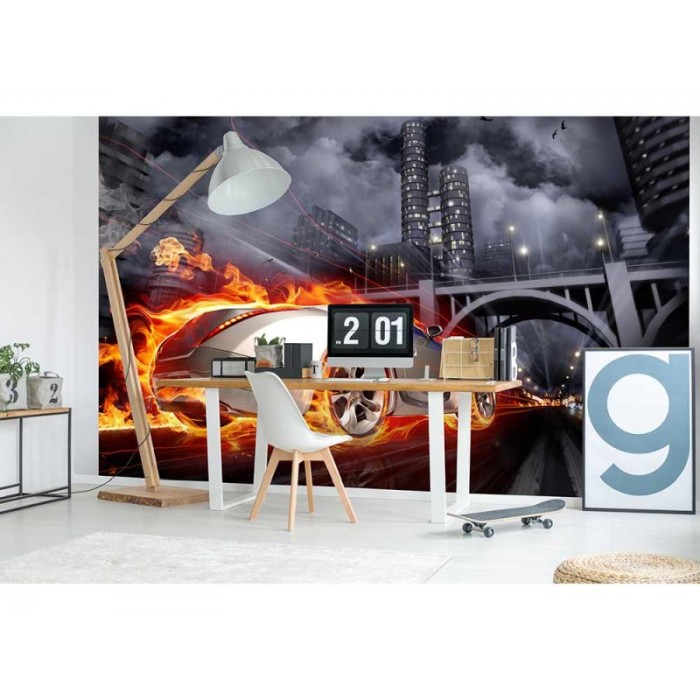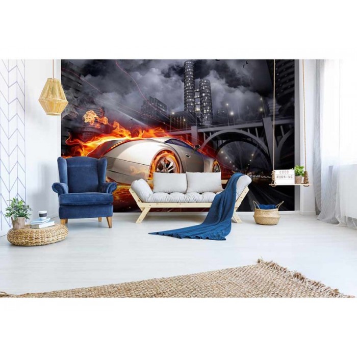 MS-5-0314 Fototapetă vlies pentru perete Mașină în flăcări - 375 x 250 cm
