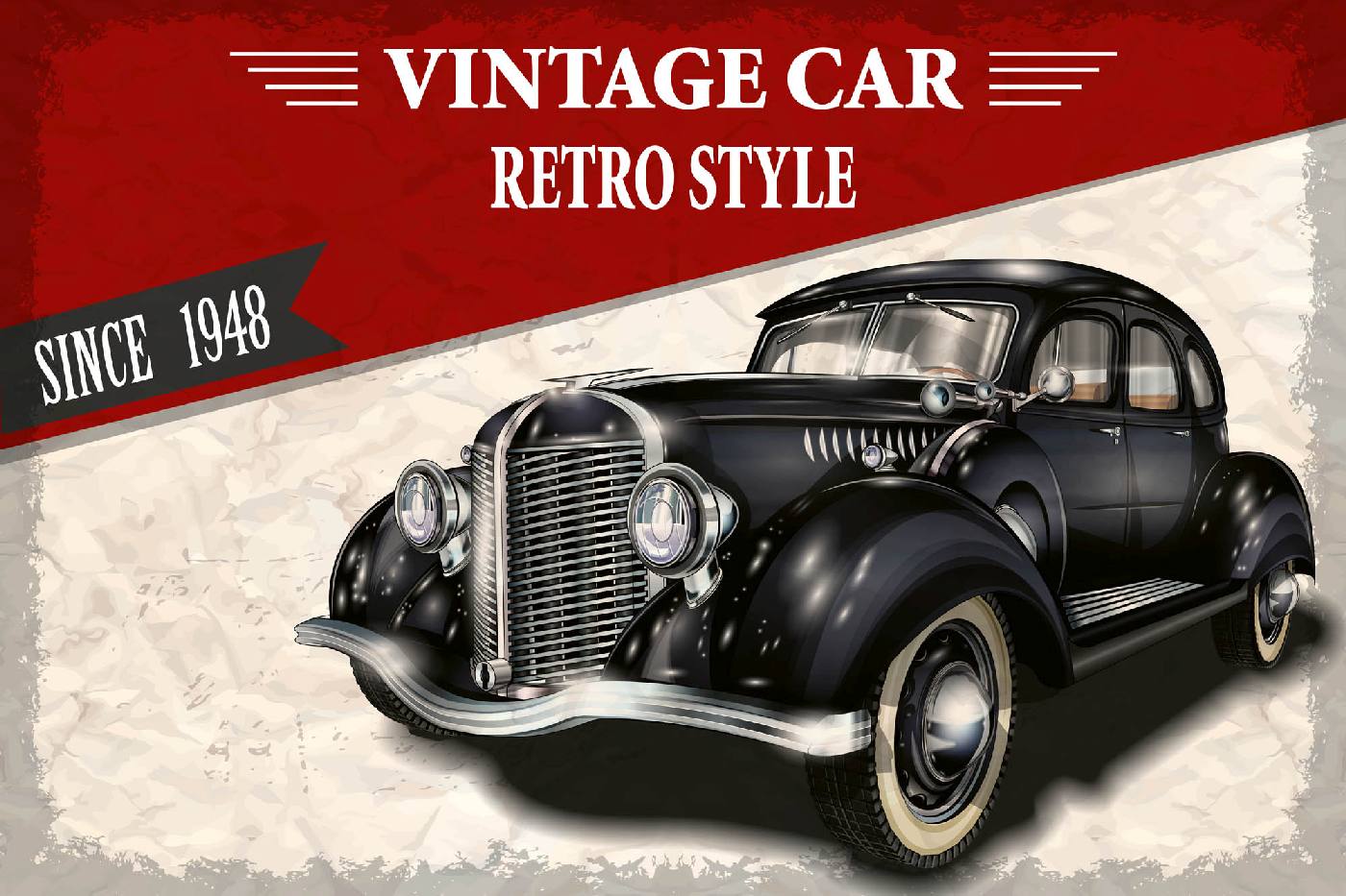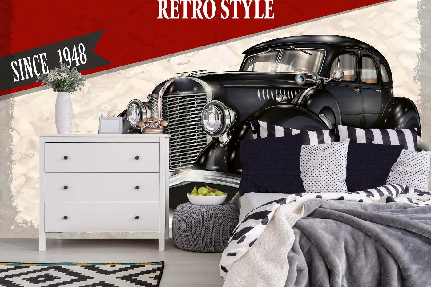 MS-5-2165 Fototapetă vlies pentru perete Mașină retro neagră - 375 x 250 cm