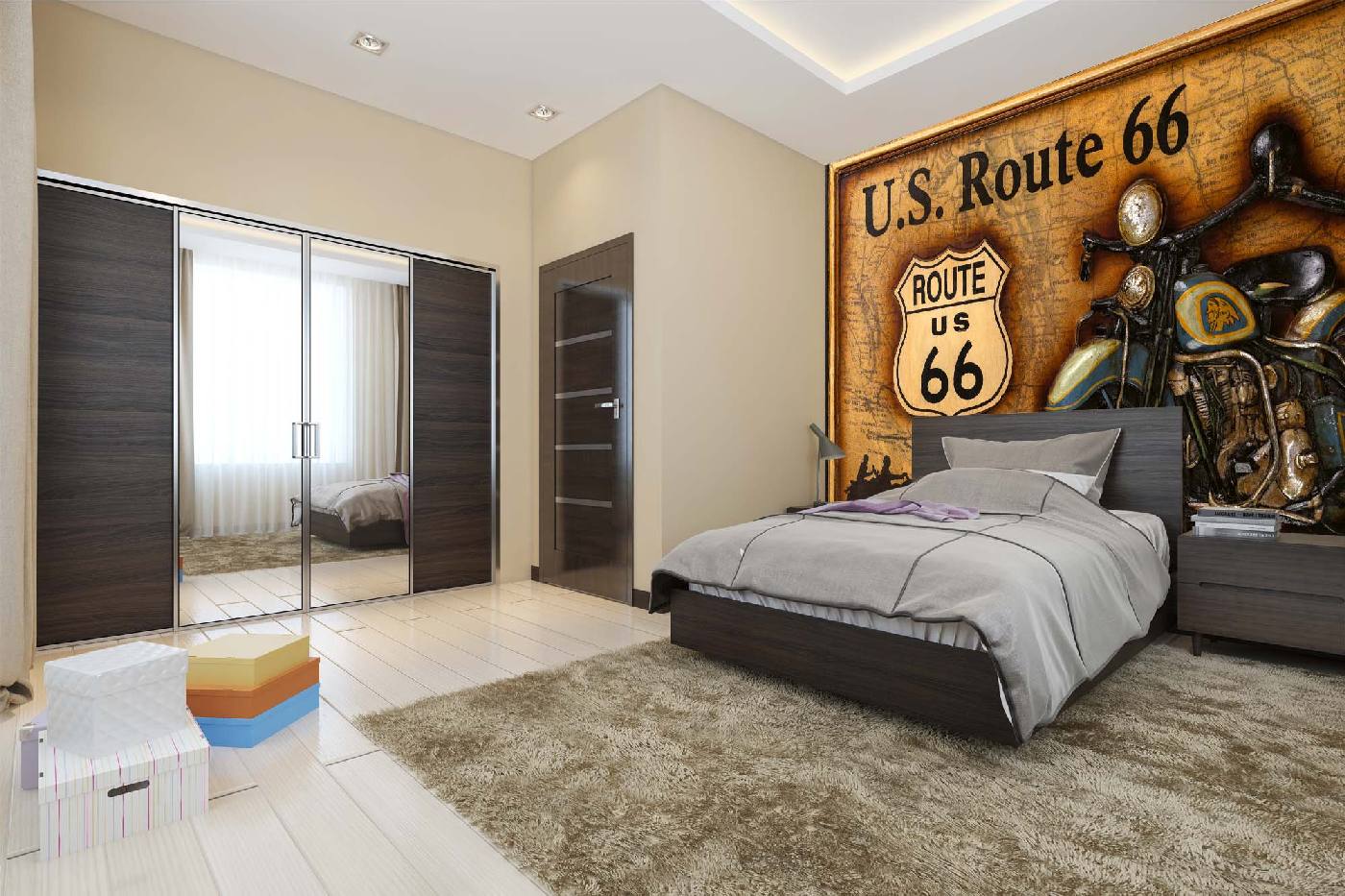 MS-5-2148 Fototapetă vlies pentru perete Motocicletă Ruta 66 - 375 x 250 cm