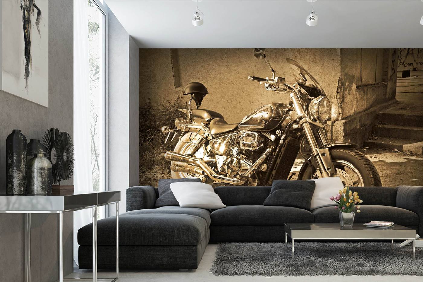 Datorită motivului mărit de mai multe ori, trebuie să țineți cont de faptul că distanța optimă de vizionare a fototapetei ar trebui să fie de cel puțin 2 metri.