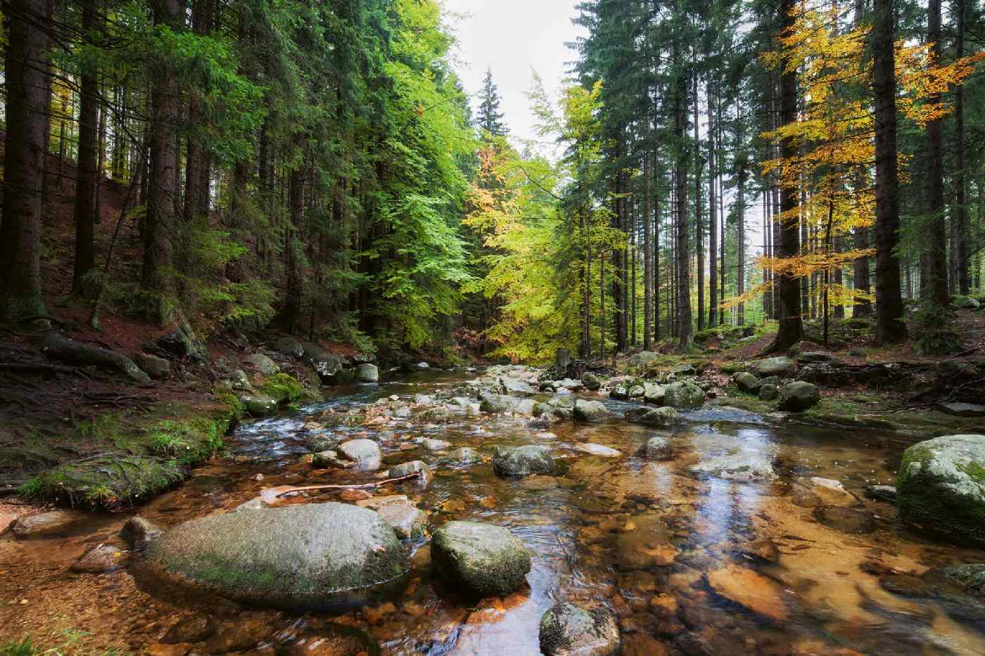 MS-5-1616 Fototapetă vlies pentru perete Pârâu în pădure - 375 x 250 cm