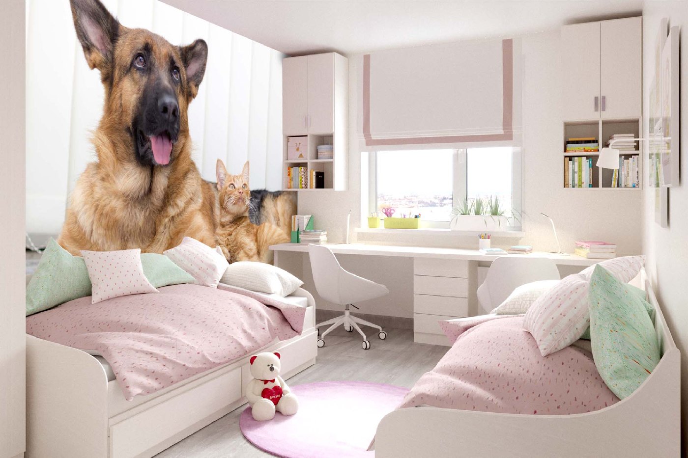 MS-5-0425 Fototapetă vlies pentru perete Pisică și câine - 375 x 250 cm