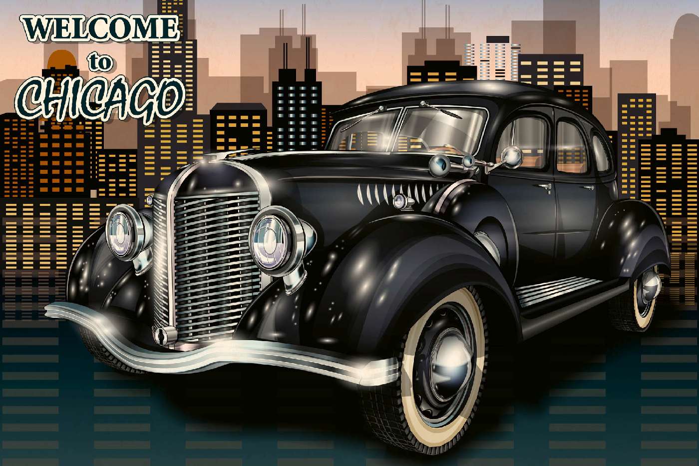 MS-5-2175 Fototapetă vlies pentru perete Poster retro Chicago - 375 x 250 cm