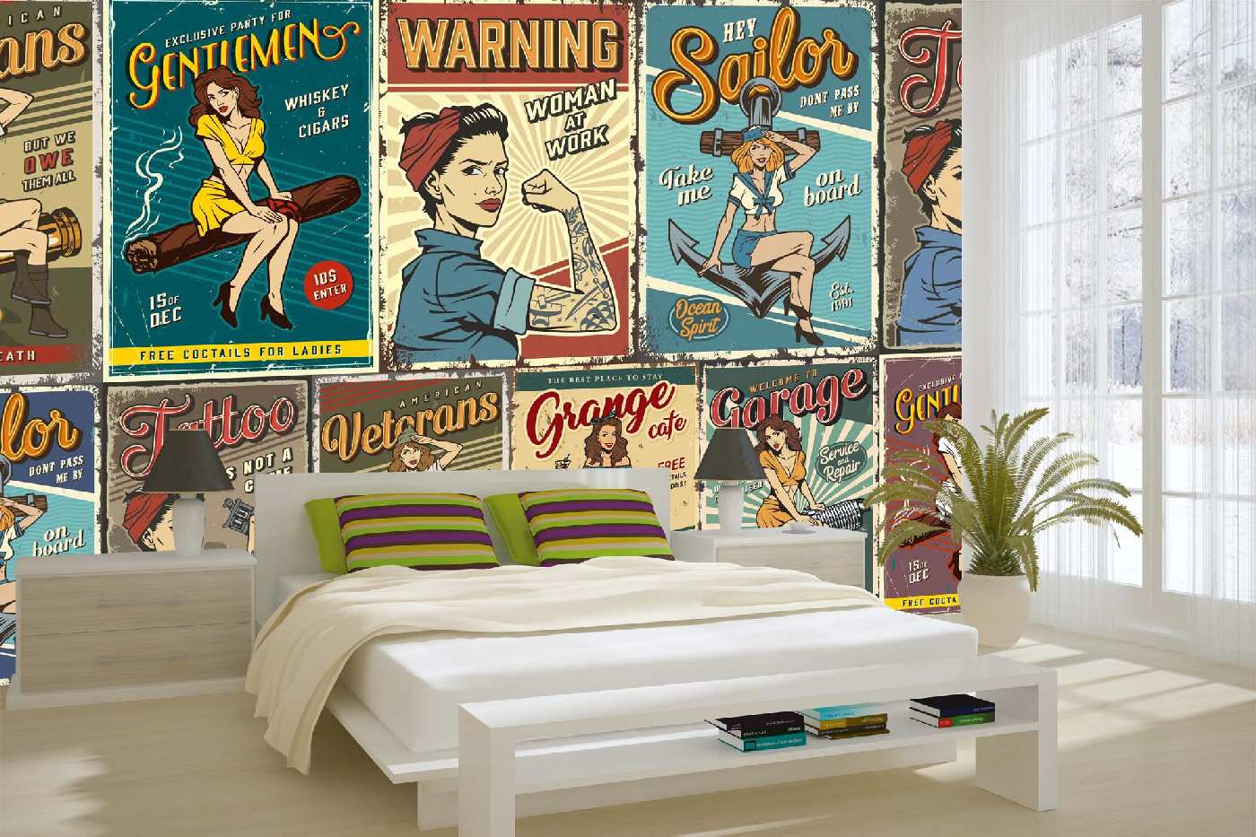 MS-5-2127 Fototapetă vlies pentru perete Postere colorate retro - 375 x 250 cm