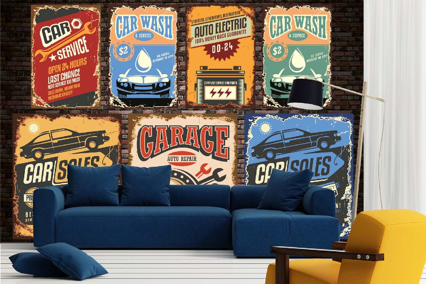 MS-5-2141 Fototapetă vlies pentru perete Postere mașini retro - 375 x 250 cm