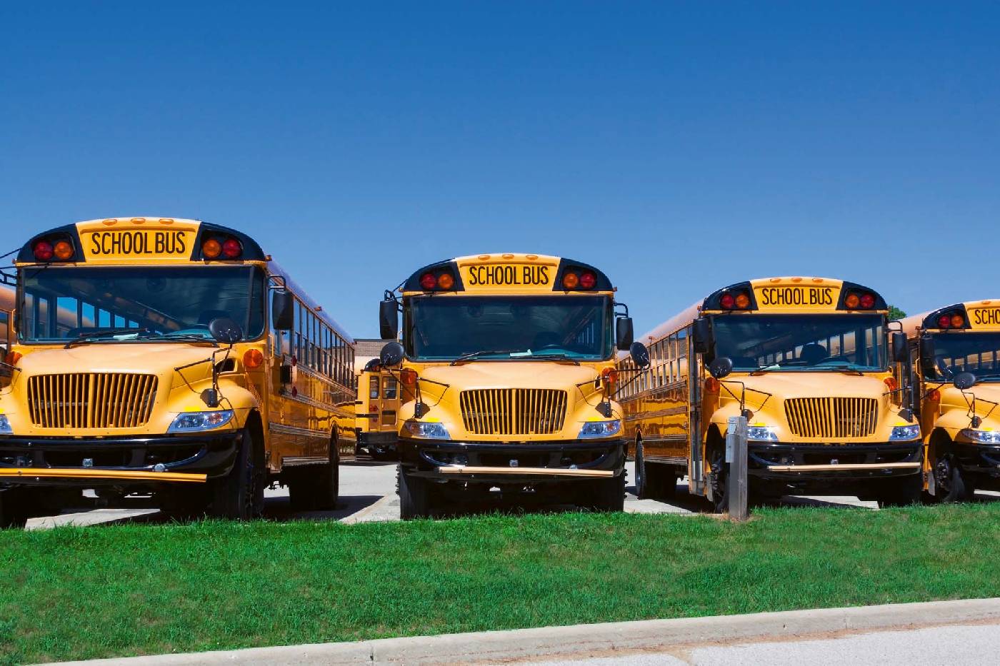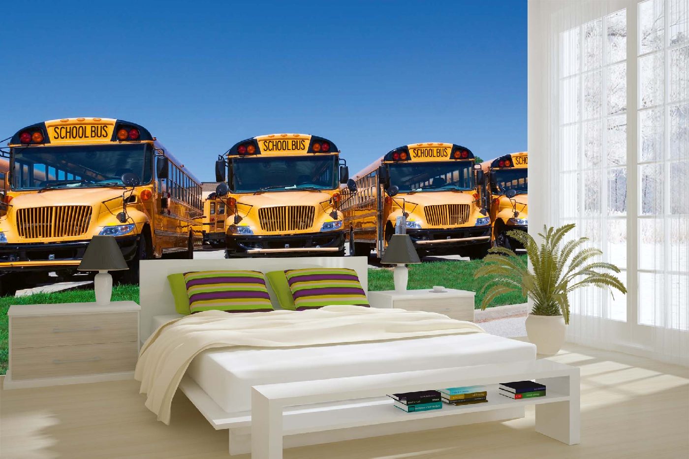 MS-5-2717 Fototapetă vlies pentru perete Rând de autobuze școlare - 375 x 250 cm