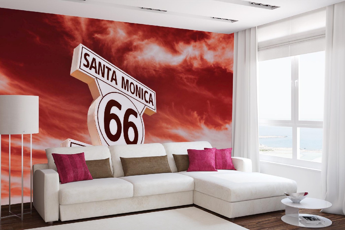 MS-5-2856 Fototapetă vlies pentru perete Ruta 66 în Santa Monica - 375 x 250 cm