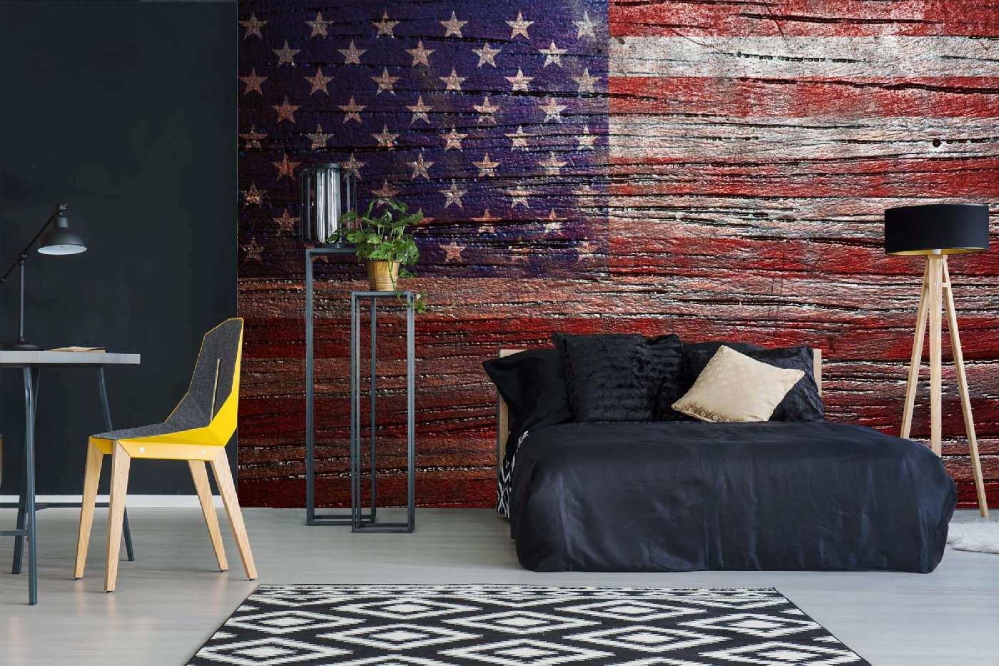 MS-5-3016 Fototapetă vlies pentru perete Steagul SUA pe lemn - 375 x 250 cm