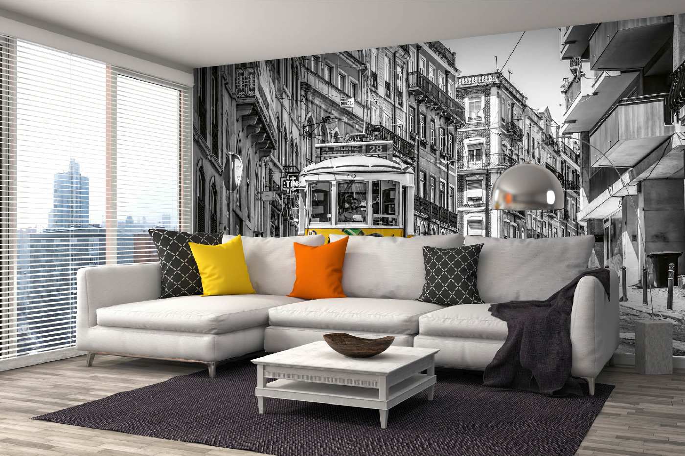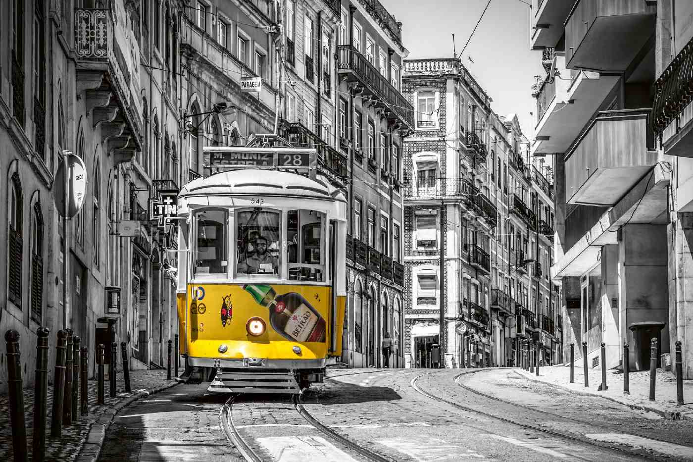 MS-5-2893 Fototapetă vlies pentru perete Tramvai galben, Lisabona - 375 x 250 cm