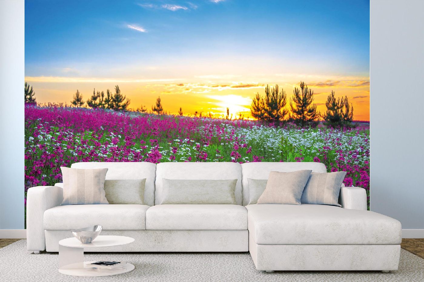 MS-5-1947 Fototapetă vlies pentru perete Zori peste o pajiște înflorită - 375 x 250 cm