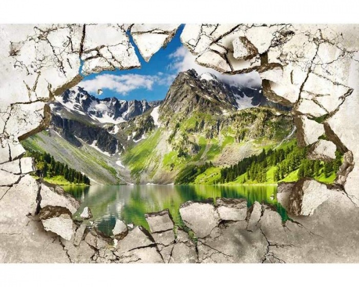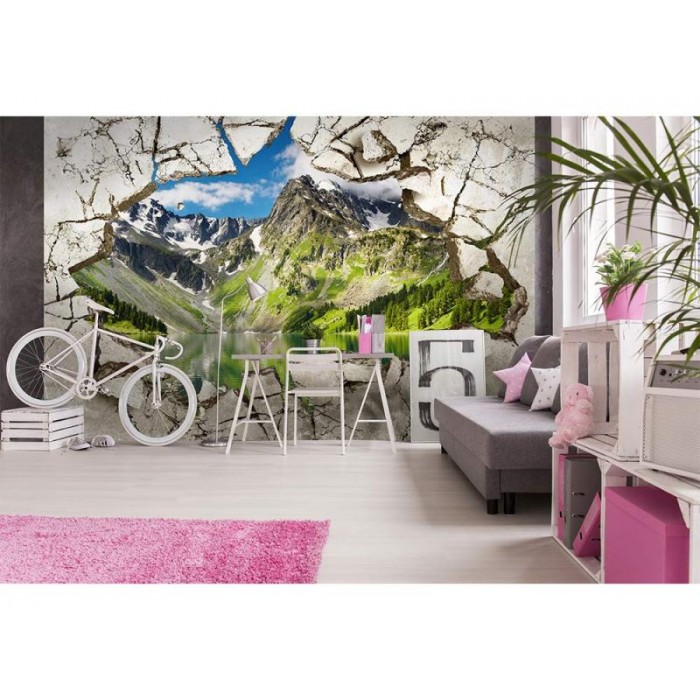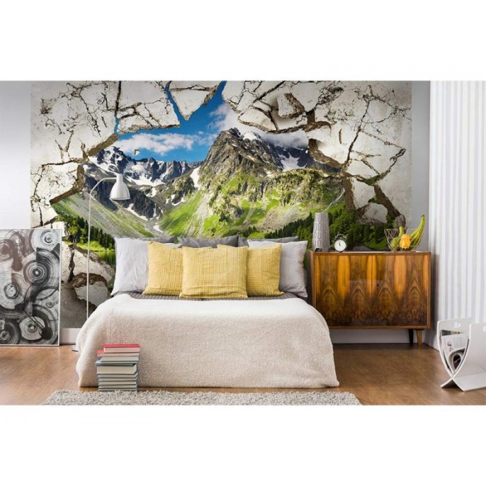 Fototapetă din vlies autocolantă Zidet spart cu munte 375 x 250 cm