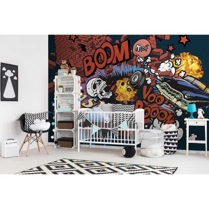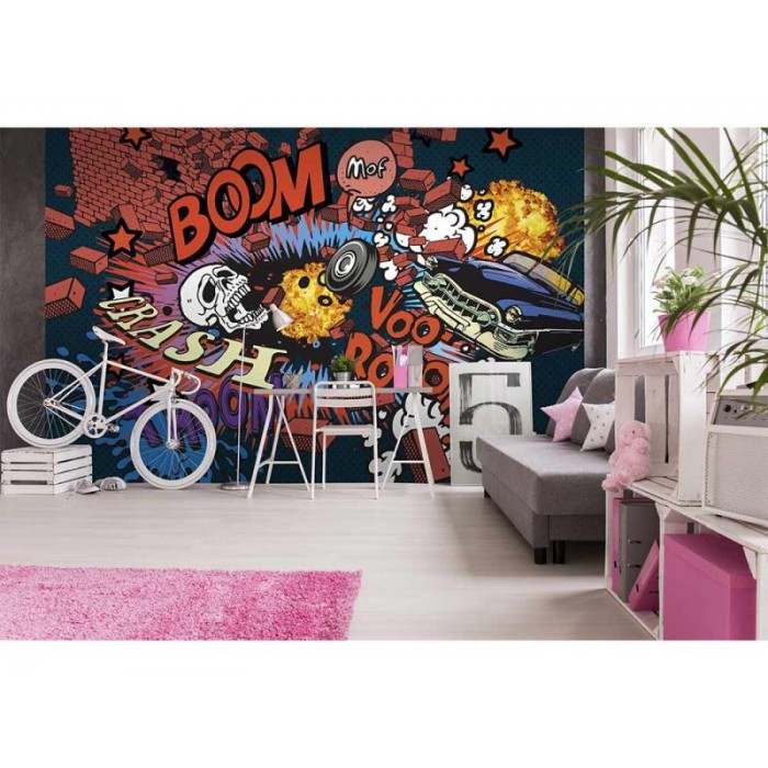 Fototapetă din vlies autocolantă Accident de mașină desen animat 375 x 250 cm