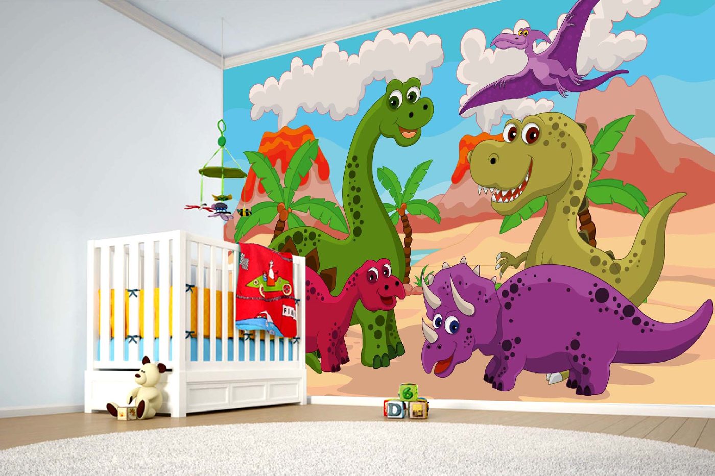 Fototapetă din vlies autocolantă Dinozauri de desene animate 375 x 250 cm