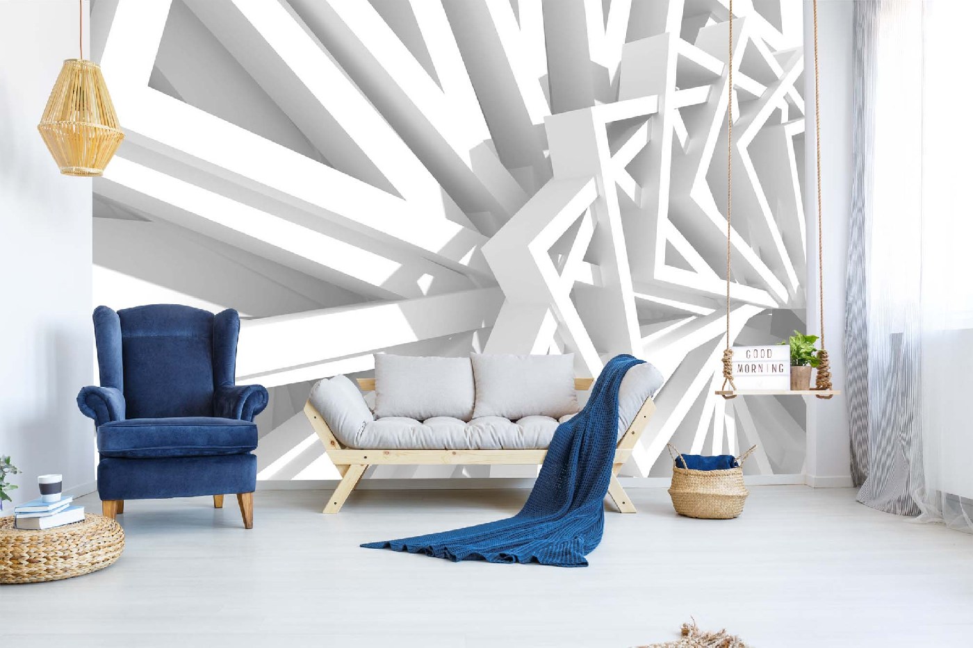 Fototapetă din vlies autocolantă Geometrie albă abstractă 375 x 250 cm