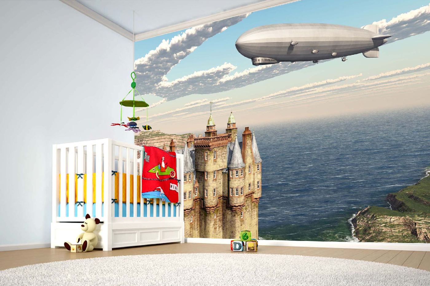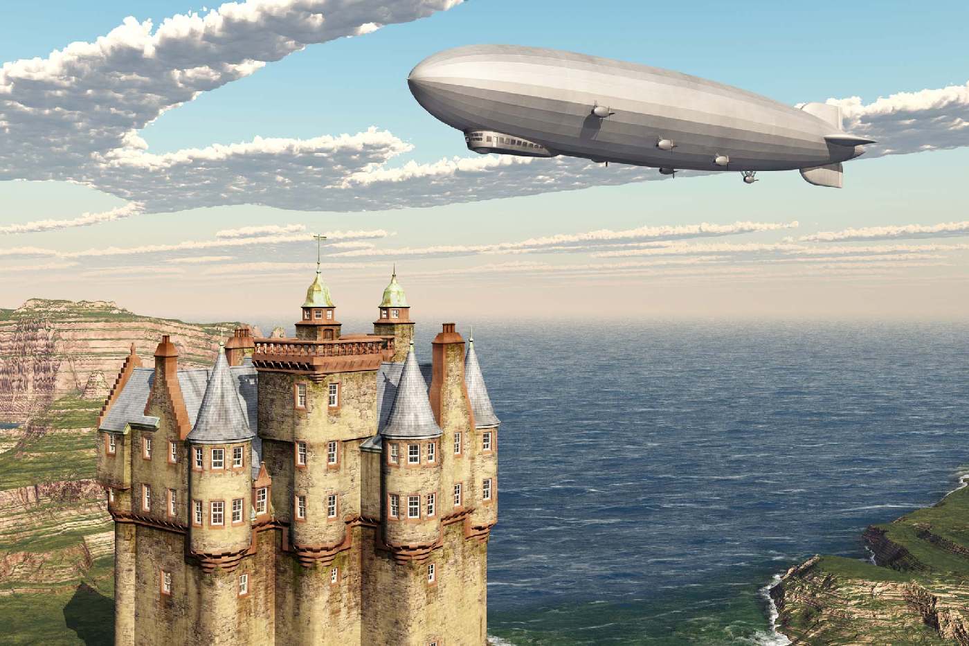 Fototapetă din vlies autocolantă Castel și dirijabil scoțian 375 x 250 cm