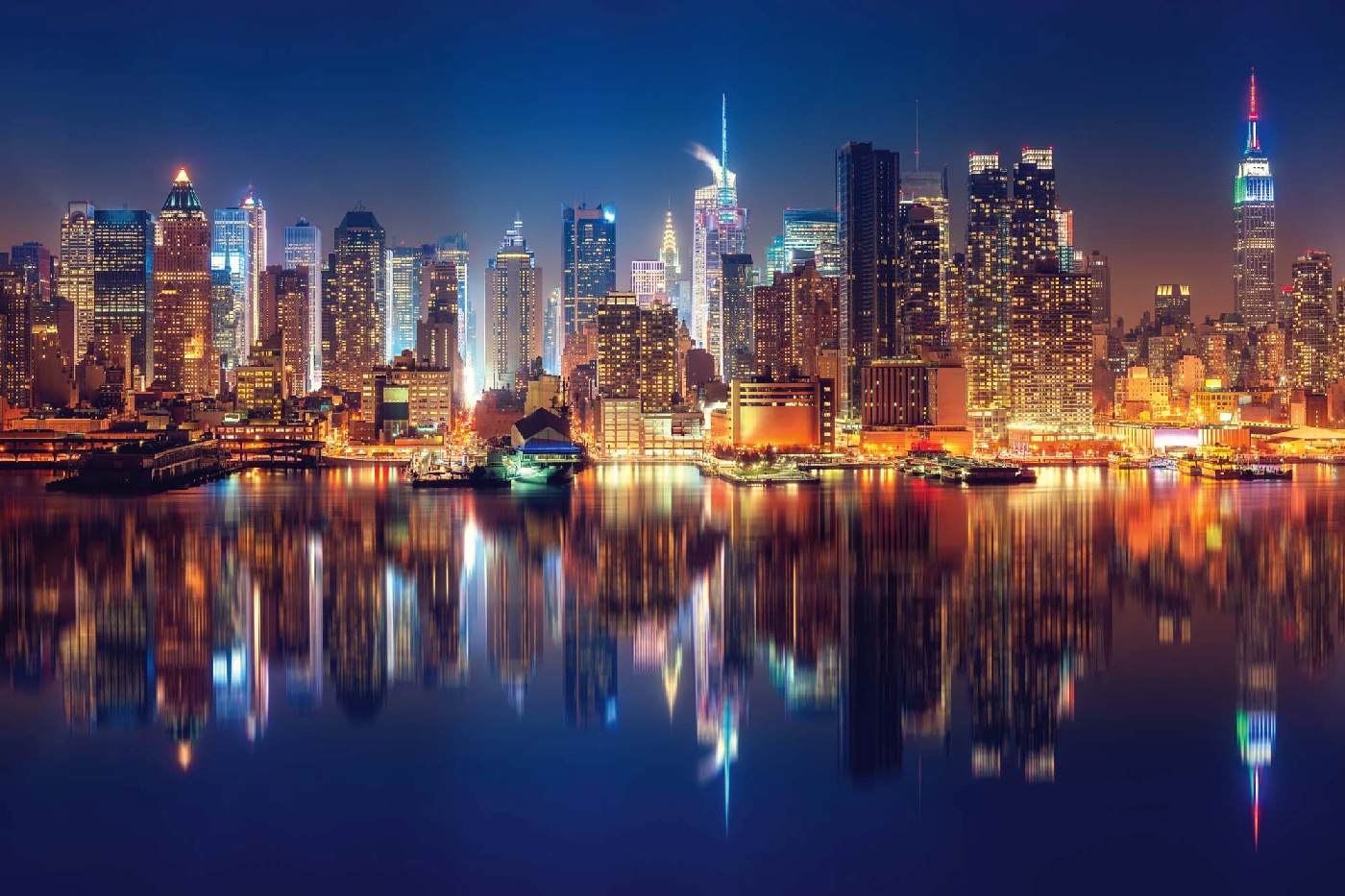 Fototapetă din vlies autocolantă Panoramă a orașului New York noaptea 375 x 250 cm