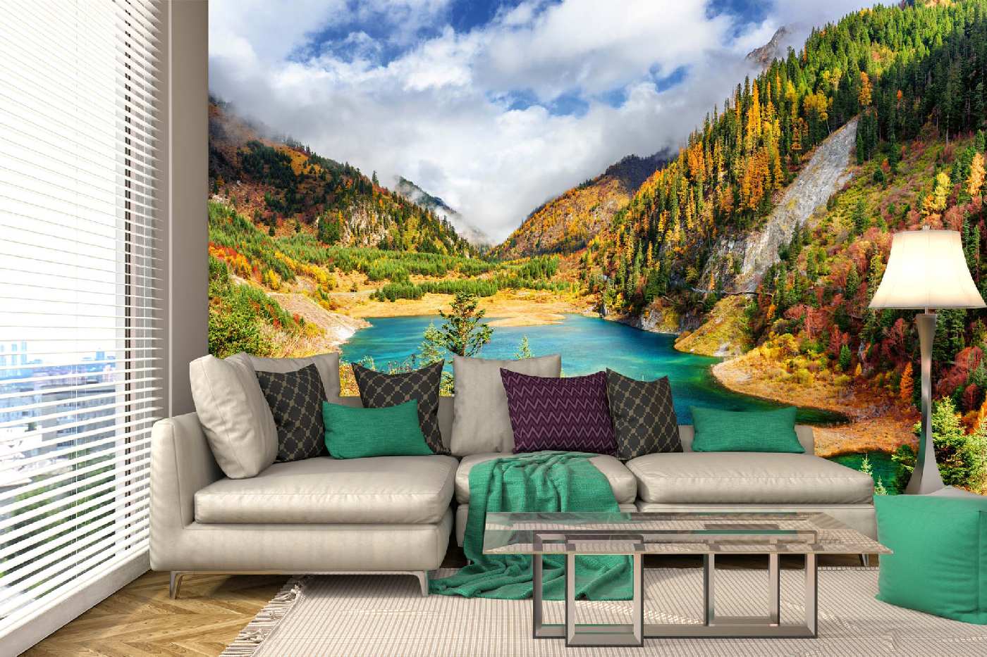 Fototapetă din vlies autocolantă Peisaj de toamnă cu lac 375 x 250 cm