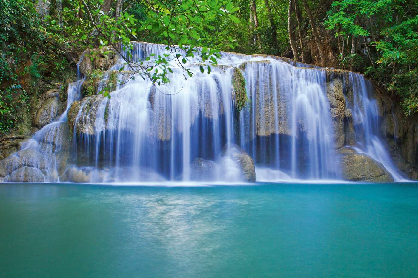 Fototapetă din vlies autocolantă Cascada joasă și frumoasă 375 x 250 cm