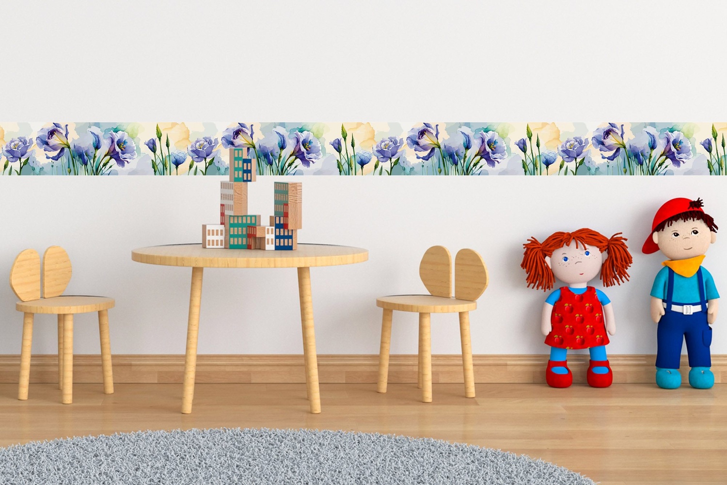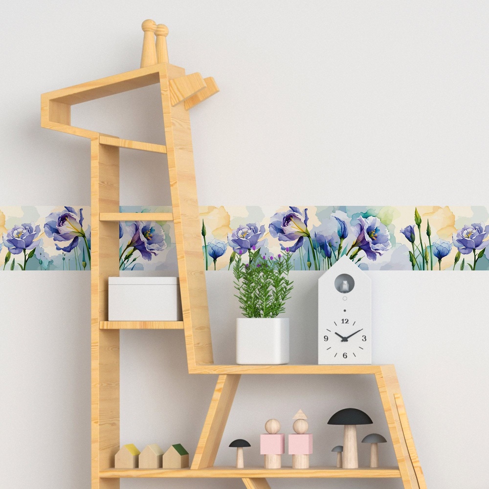 Bordură autocolantă din vlies Flori Acuarelă 15 cm x 5 m
