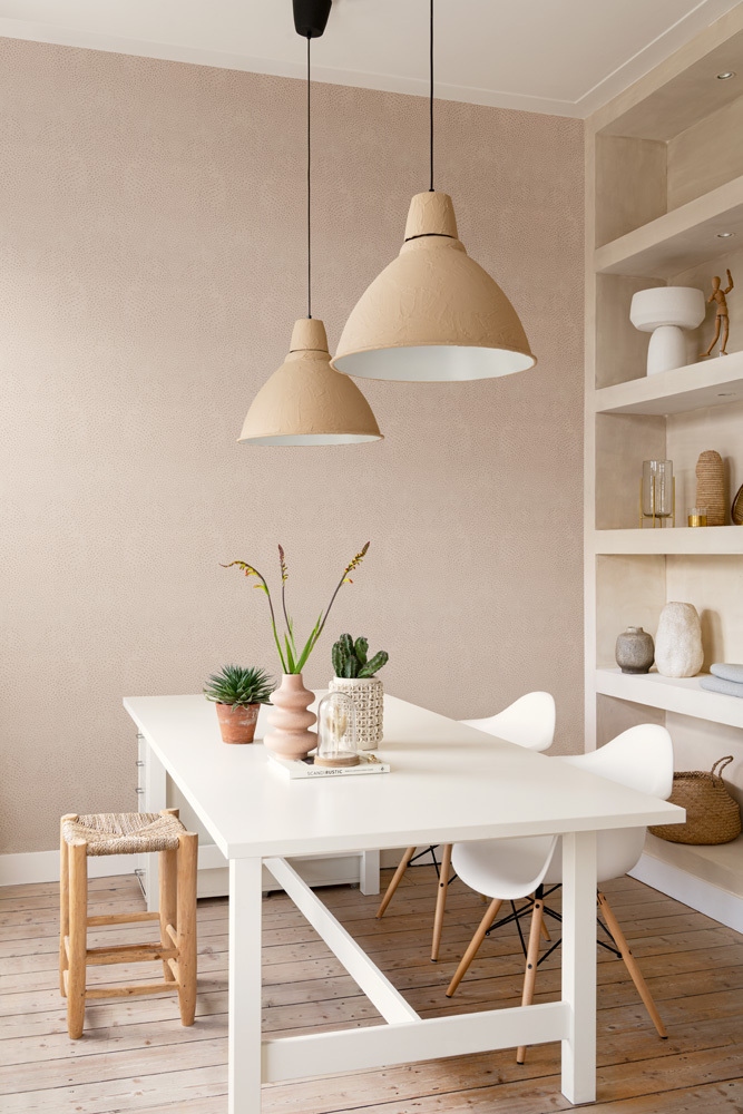 Tapetul este fabricat din material vlies, adică din fibre celulozice, care garantează rezistență, lavabilitate, stabilitate a culorii și, mai ales, o durată lungă de viață. Tapetele de perete pot transforma cu ușurință aspectul încăperii și îi pot oferi o atmosferă complet nouă, în funcție de modelul ales. Avantajul tapetului vlies constă în aplicarea și îndepărtarea ușoară, precum și în permeabilitatea excelentă la aer.