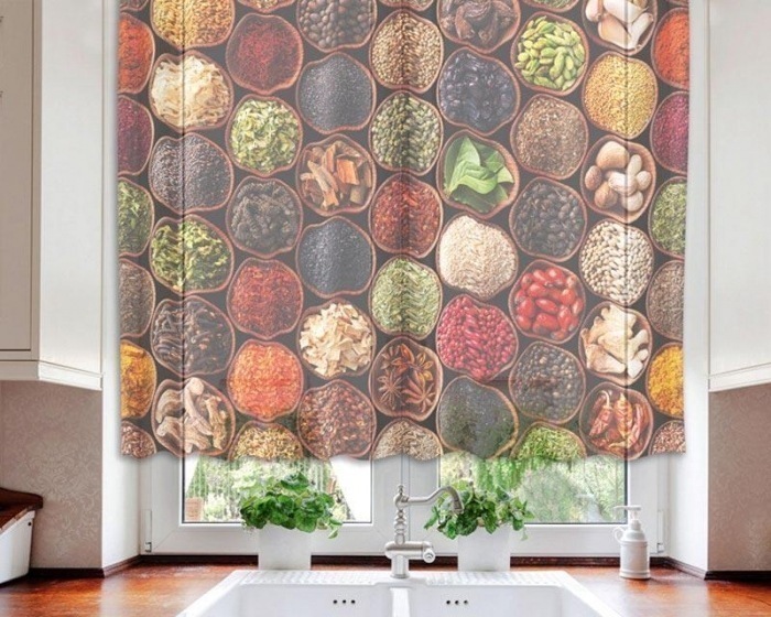 Perdele gata făcute DIMEX – fotoperdea individuală Boluri cu condimente 140 x 120 cm