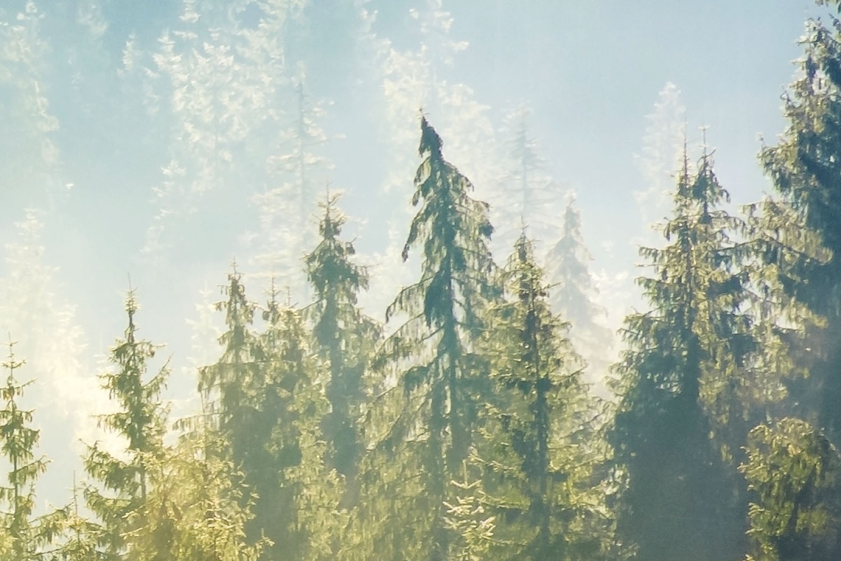 Plexiglas pentru peretele de bucătărie Ceață peste pădure – 60 x 40 cm