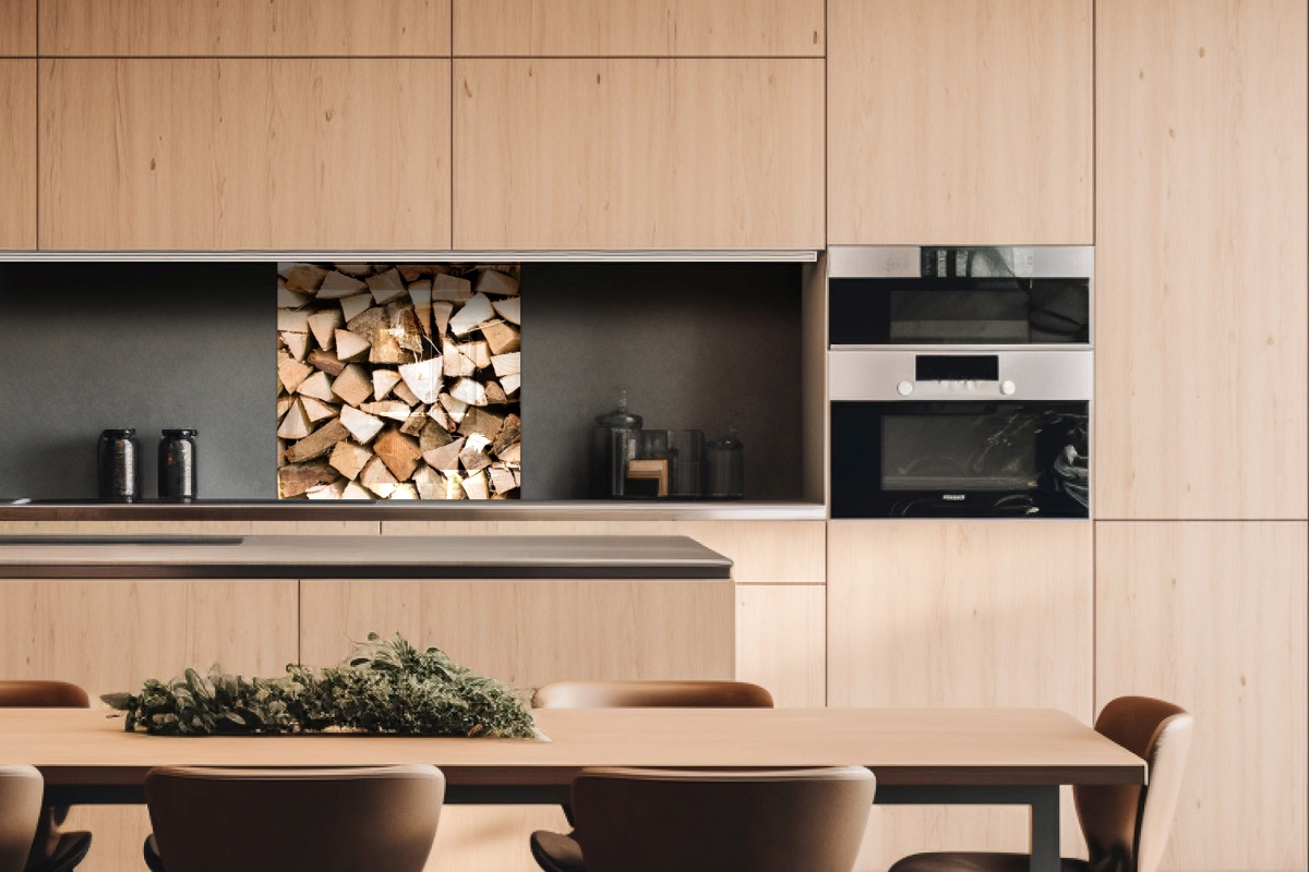 Plexiglas pentru peretele de bucătărie Bușteni de lemn – 60 x 60 cm