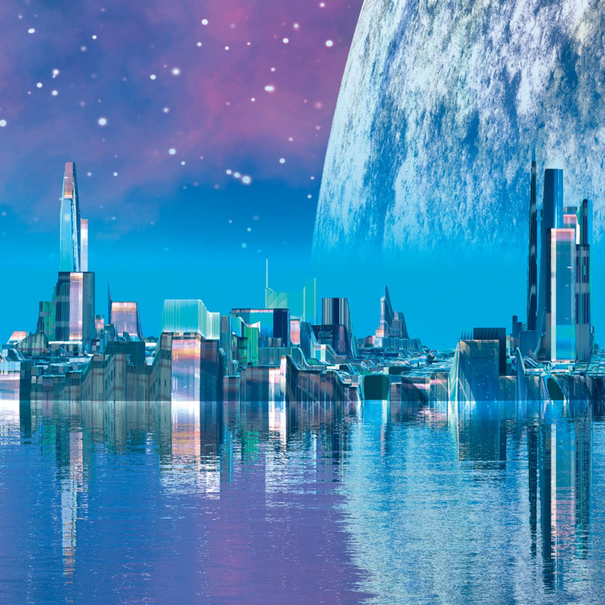 Plexiglas pentru peretele de bucătărie Orașul viitorului – 60 x 60 cm