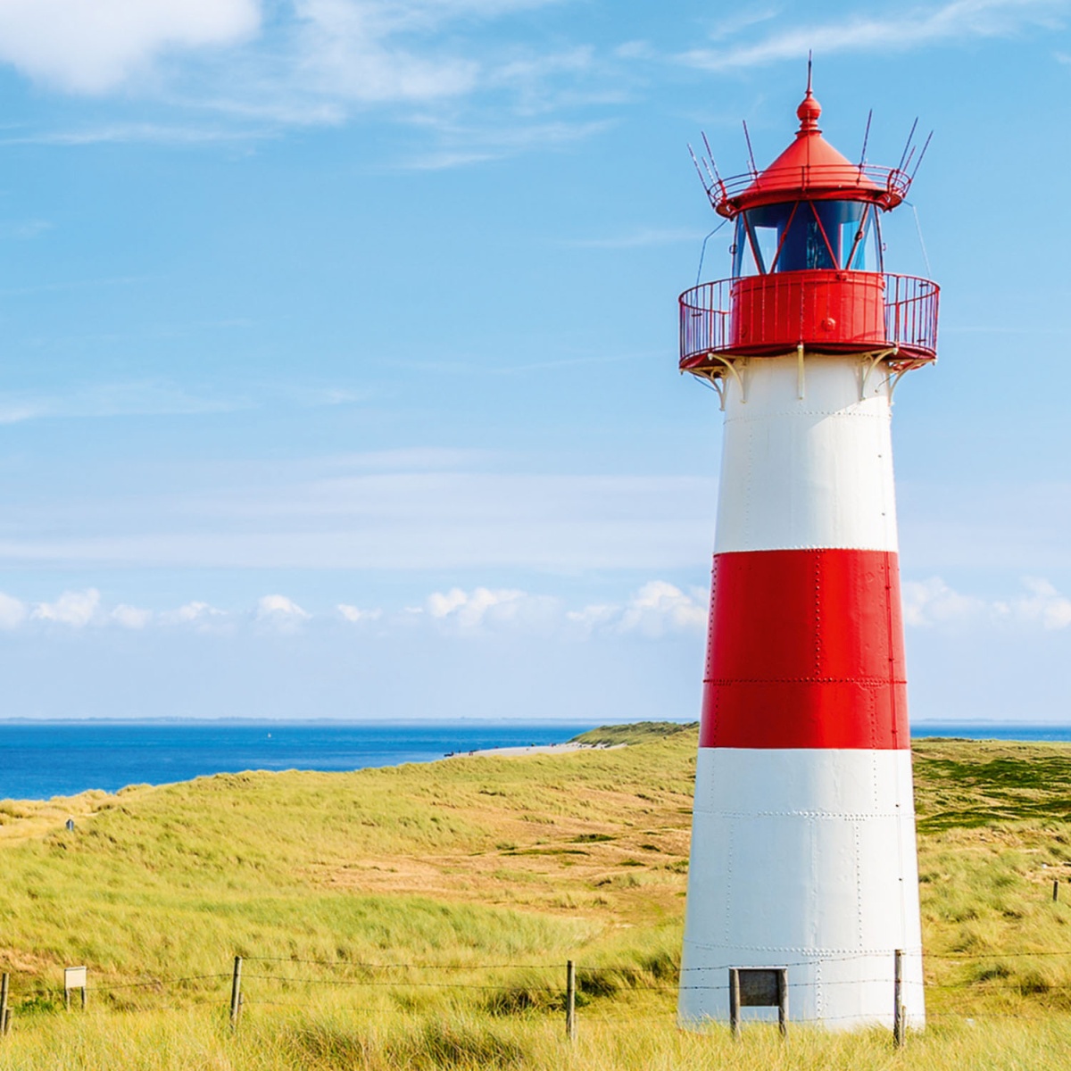 Plexiglas pentru peretele de bucătărie Far pe plajă – 60 x 60 cm