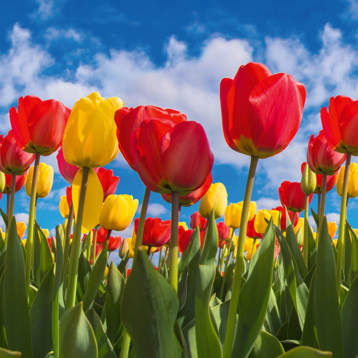 Plexiglas pentru peretele de bucătărie Câmp de lalele – 60 x 60 cm