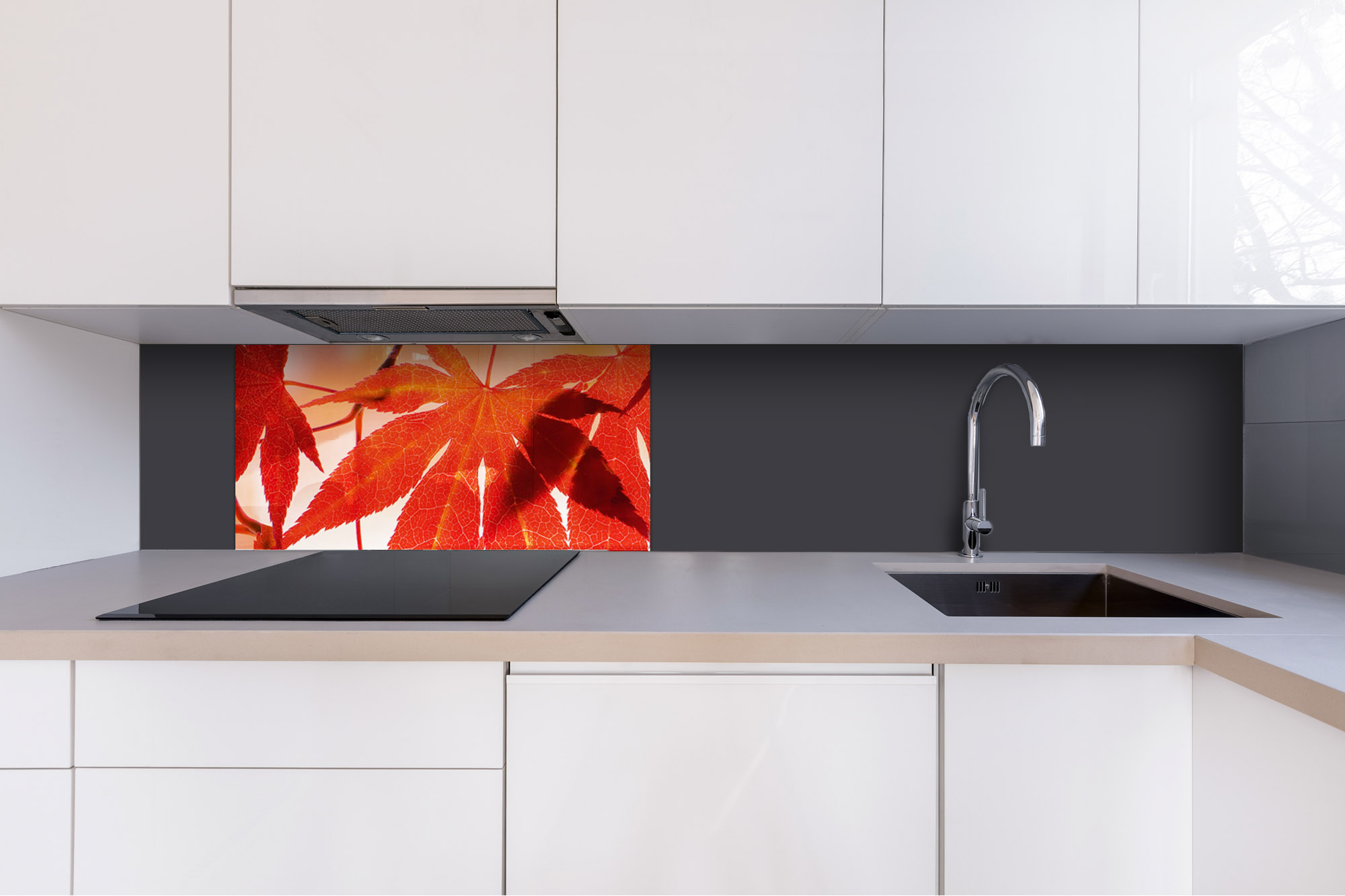 Plexiglas pentru peretele de bucătărie Frunze roșii – 80 x 40 cm