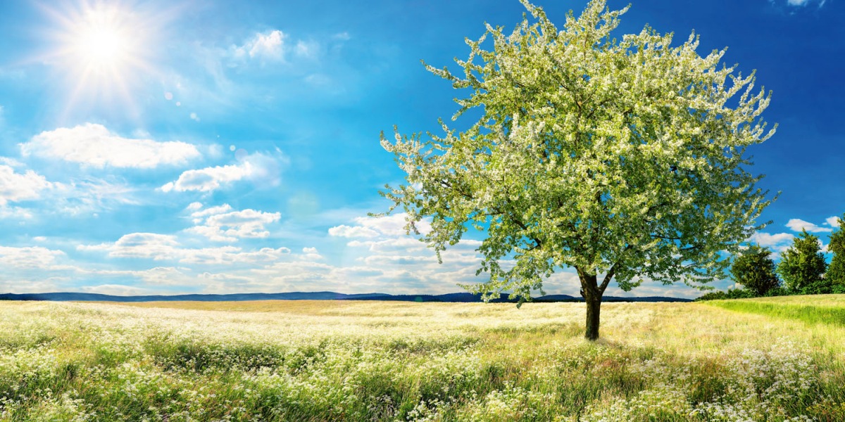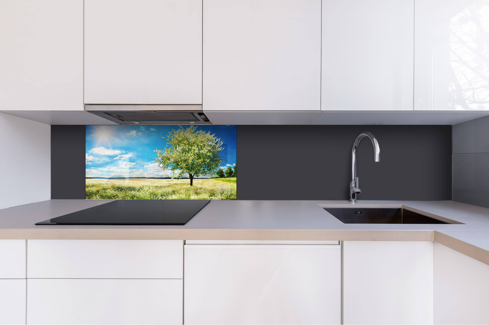 Plexiglas pentru peretele de bucătărie Copac în pajiște – 80 x 40 cm