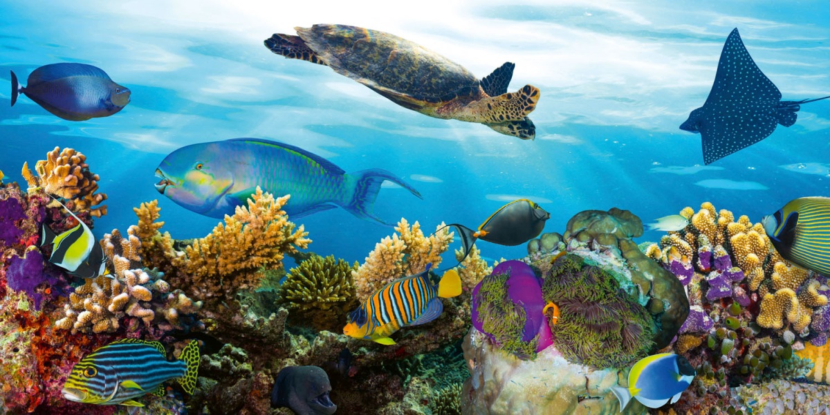 Plexiglas pentru peretele de bucătărie Pește în ocean – 80 x 40 cm
