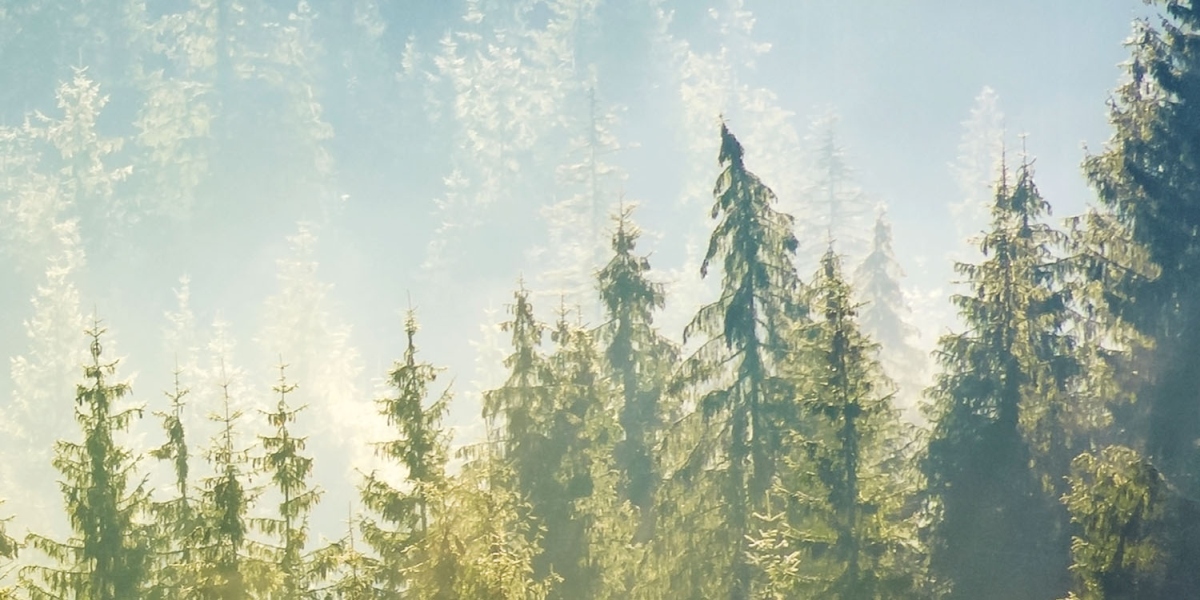 Plexiglas pentru peretele de bucătărie Ceață peste pădure – 80 x 40 cm