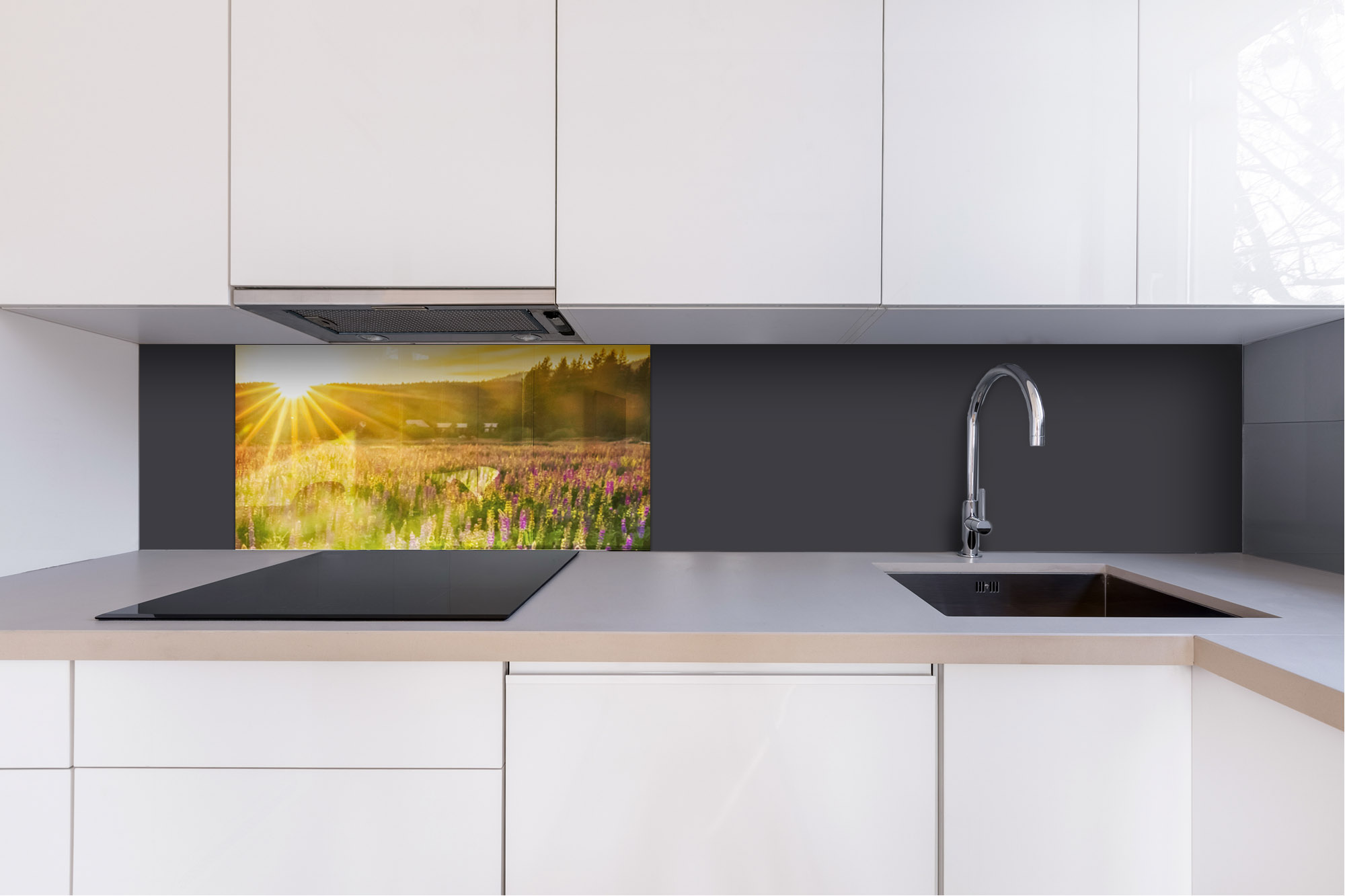 Plexiglas pentru peretele de bucătărie Raze de soare peste pajiște – 80 x 40 cm