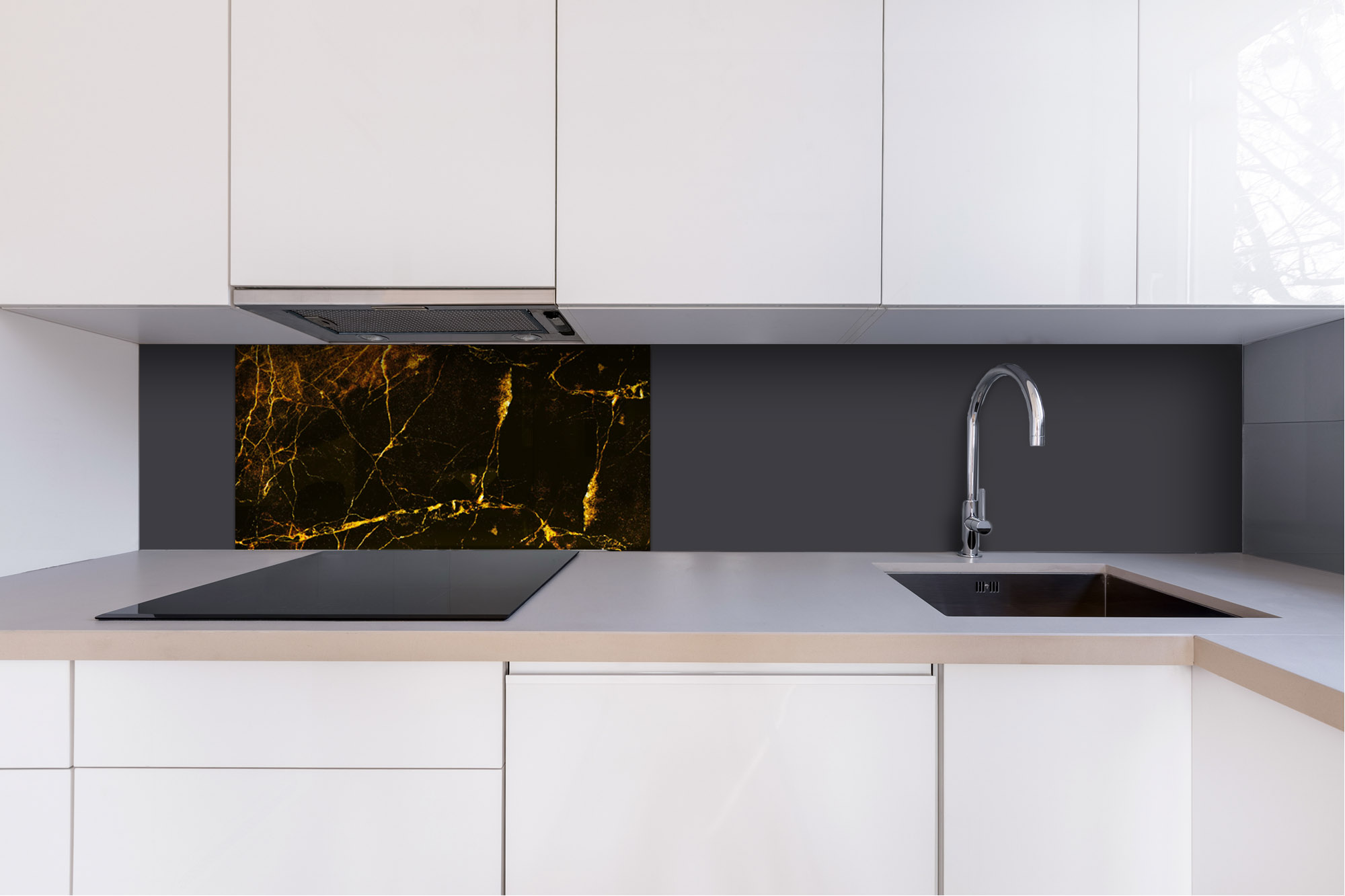 Plexiglas pentru peretele de bucătărie Marmură Neagră și Aurie – 80 x 40 cm