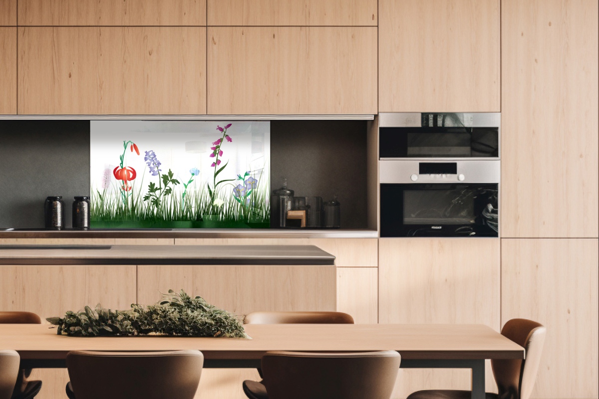 Plexiglas pentru peretele de bucătărie Design de pajiște – 100 x 60 cm