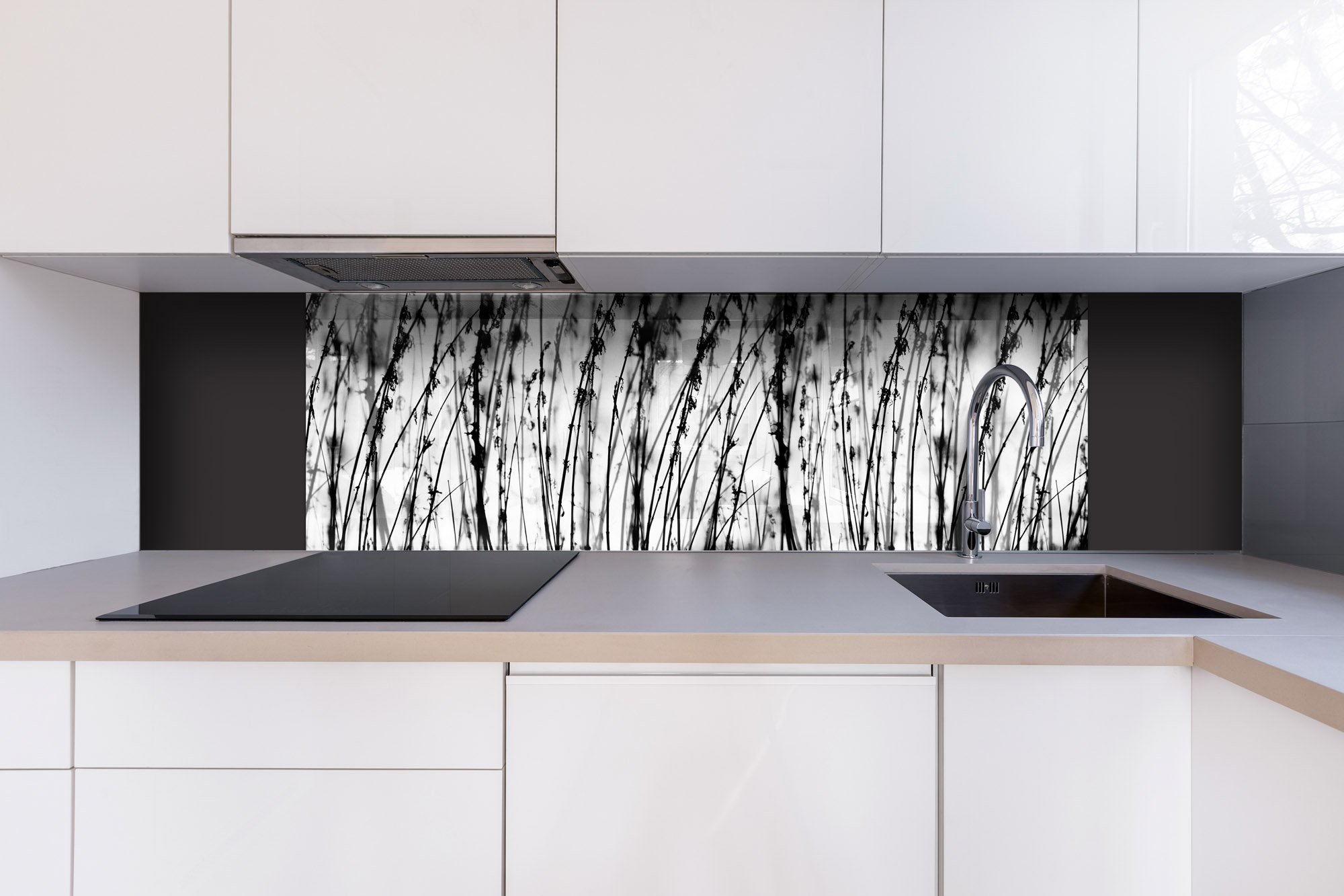 Plexiglas pentru peretele de bucătărie Iarbă alb-negru – 180 x 60 cm