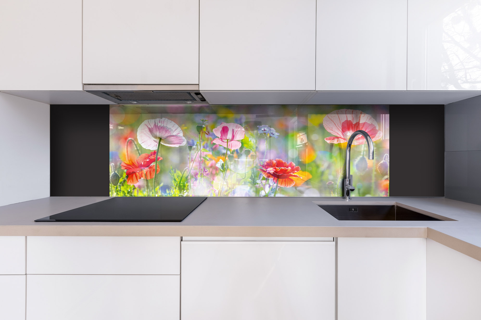Plexiglas pentru peretele de bucătărie Pajiște colorată de vară – 180 x 60 cm