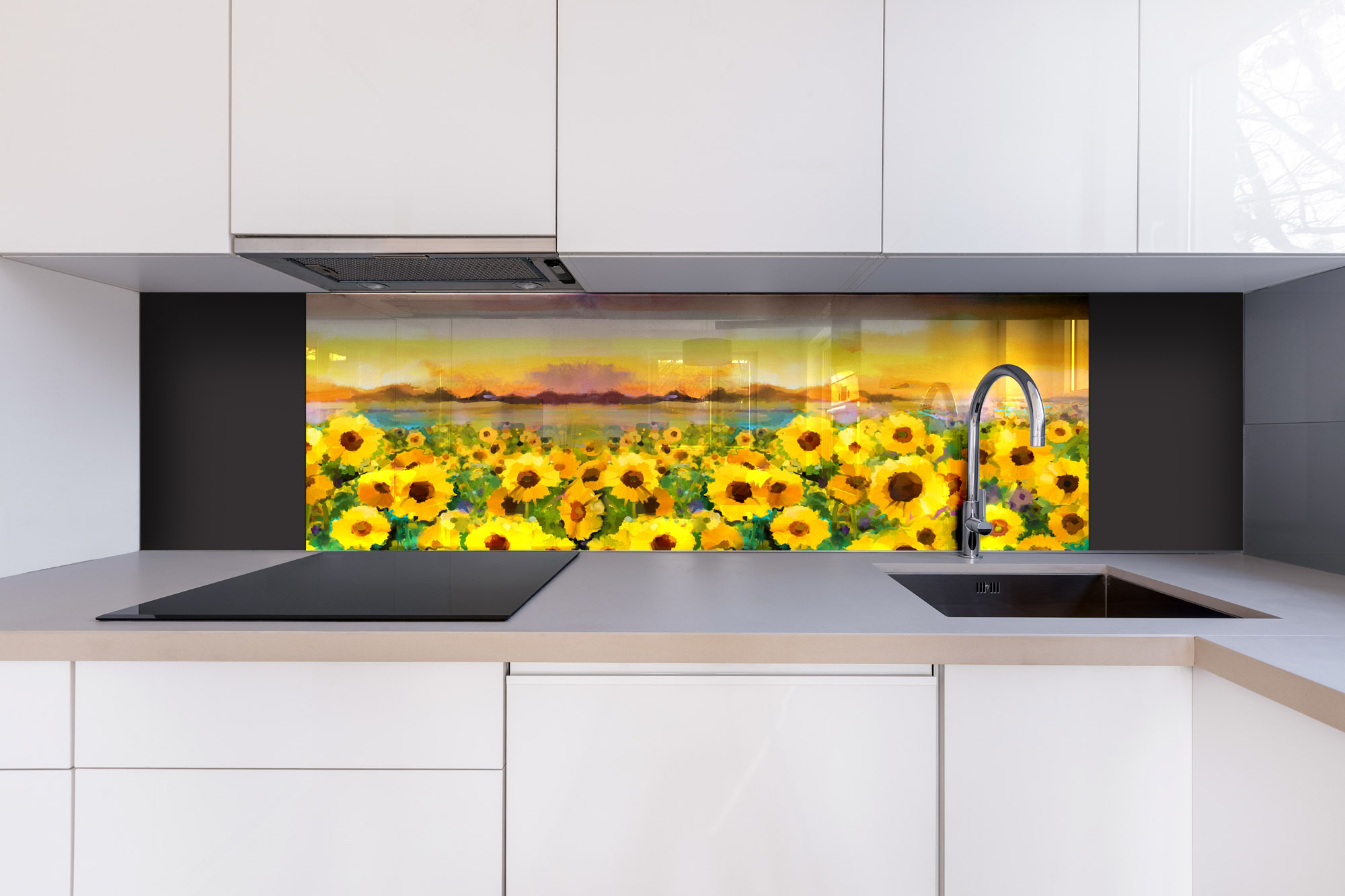 Plexiglas pentru peretele de bucătărie Pictură cu floarea soarelui – 180 x 60 cm